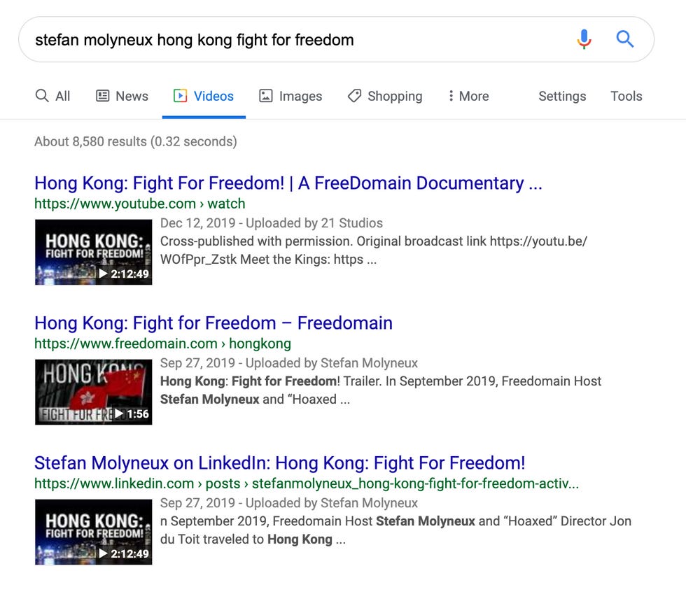 Intrepid reporter that I am, I decided to check this out. Could the communists underneath Stefan Molyneux's bed actually have wiped this whole entire documentary from YouTube's search function?