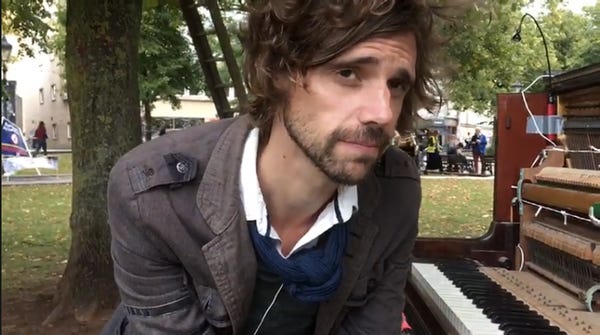 Naturally, Luke Howard is turning this into a promotional campaign for himself and his piano playing, and has set up a big sign promoting Facebook and Instagram pages for his stunt. Those pages do not yet exist, of course, because Luke Howard is too busy being whimsical to get around to that.