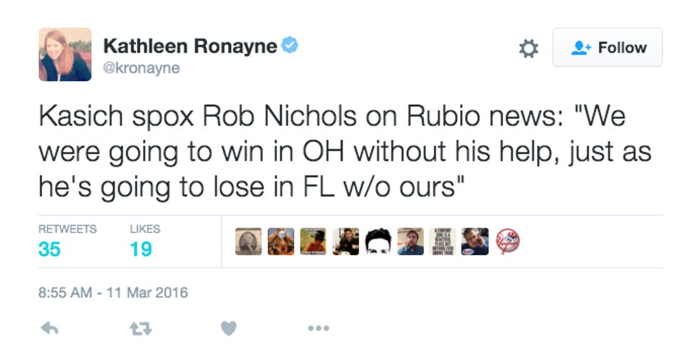 Isn't that so nice of Team Marco to endorse someone else before Rubio even drops out of the race? So generous. So neighborly. So Christian of him. Team Kasich, however, is not feeling quite as Christian toward Little Marco: