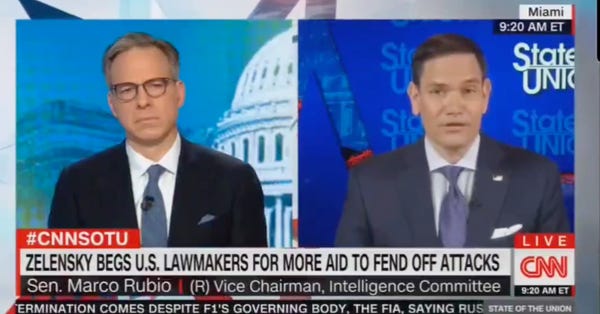 During a Sunday appearance on CNN’s "State of the Union," Rubio stood by his decision. When Jake Tapper asked him if it was a mistake to tweet the photo, Rubio courageously shifted the blame to Ukrainian ambassador Oksana Markarova. His “defense” was that Markarova hadn’t told him soon enough not to share sensitive details of the meeting online.