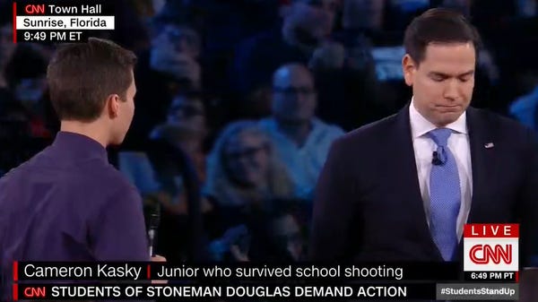 KASKY: Senator Rubio, it's hard to look at you and not look down the barrel of an AR-15 and not look at Nikolas Cruz ...