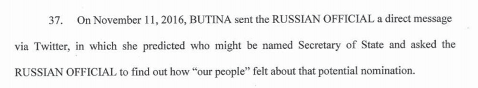 By October of 2016, Butina was expressing sorrow to Torshin in Twitter DMs that America was "broken" when it came to Russian relations, crying that one of the parties (the GOP) loves Russia, whereas the shitty other party (the only party with any patriots left, apparently) hates Russia. BOO HOO. Weird that she was pretty sure the GOP had already fully sold its soul on Russia, though, isn't it?