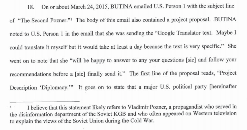 How interesting that back in March of 2015, Maria Butina felt that "a major U.S. political party" would likely control the whole government after the 2016 election. (She is talking about the Republicans ... unless she meant the Democrats because the only real collusion was with Hillary and the uraniums and Russia and the fake dossier, CHECKMATE LIBTURDS!) Wonder if she knew a certain orange-haired glob of shit who was also a Russian intelligence asset was planning on coming down an escalator a couple months later to announce his candidacy by calling Mexican rapists.