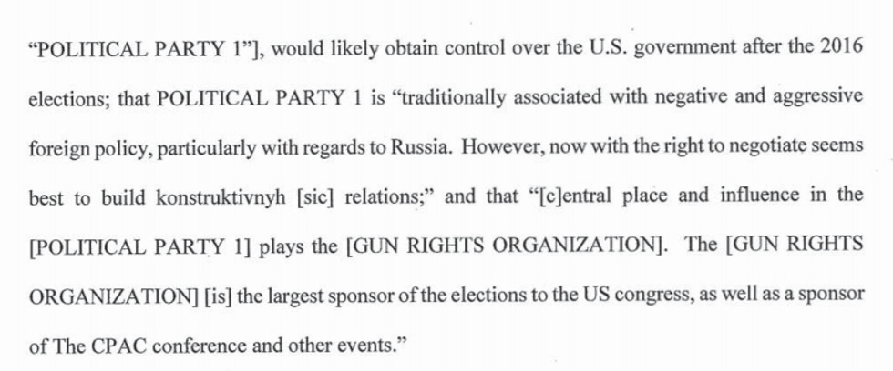 Let us learn about Butina's work to infiltrate the NRA, which very strangely gave Donald Trump record-breaking amounts of money during the 2016 campaign, some of which might maybe have been laundered from Russia. (Remember that time Fusion GPS co-founder Glenn Simpson testified to Congress that the Russians had "infiltrated the NRA"? We do! )