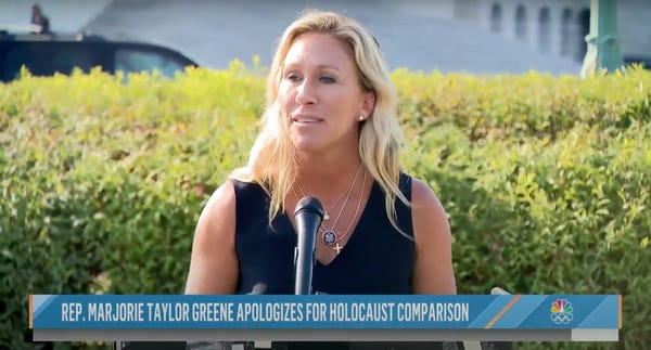 Rep. Marjorie Taylor Greene took a crash course in the Holocaust last month after repeatedly comparing vaccine passports and mask mandates to the systemic, state-sponsored killing of six million Jewish people. She visited the Holocaust Museum, presumably for the first time (we recommend going even if you haven't horribly offended the Jewish people), and left a changed woman. She realized she'd made a mistake and — get this — actually apologized.