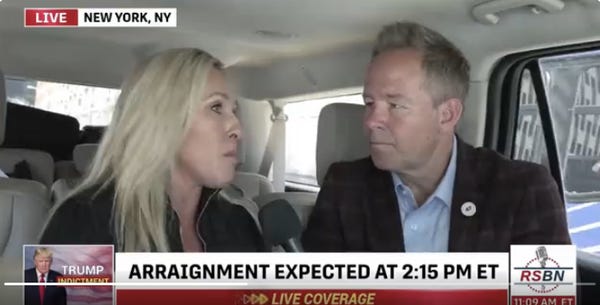 “Rep. Marjorie Taylor Greene (R-GA): “Trump is joining some of the most incredible people in history being arrested today. Nelson Mandela was arrested, served time in prison. Jesus! Jesus was arrested and murdered.””