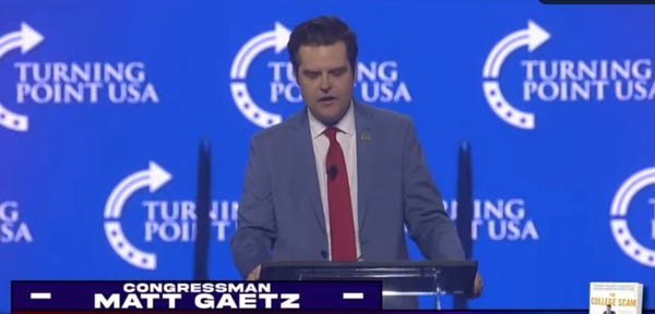 These pro-death Republicans haven't just opposed mask mandates as government overreach or simply unenforceable in practice. They insist masks are literal child abuse and even go so far as to mock anyone who wears them. During a recent appearance at one of those endless Turning Point USA events, Rep. Matt Gaetz denouncedRepublican Governors Larry Hogan, Mike DeWine, and Doug Ducey from Maryland, Ohio, and Arizona who (briefly) implemented sensible public health measures during a pandemic. They denied their constituents the freedom to die needlessly!