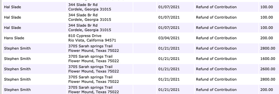There are also thousands of dollars of refunds to Gaetz's own supporters, in amounts that suggest that the congressman engaged in the same kind of small-print fuckery that caused donors to inadvertently sign up for repeating or doubled contributions to the Trump campaign and NRCC, often putting themselves at risk of exceeding the (newly increased) $2,900 limit.
