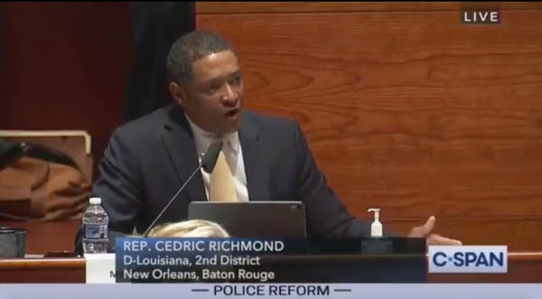 Describing the current situation as a "crisis" where people are losing their lives (fact check: true), Richmond rejected a "watered-down" show bill that "mandates nothing." He was especially pissed about pointless sideshow amendments Republicans offered, including an investigation into antifa. Antifa didn't break a black woman's collarbone or partially blind a journalist.