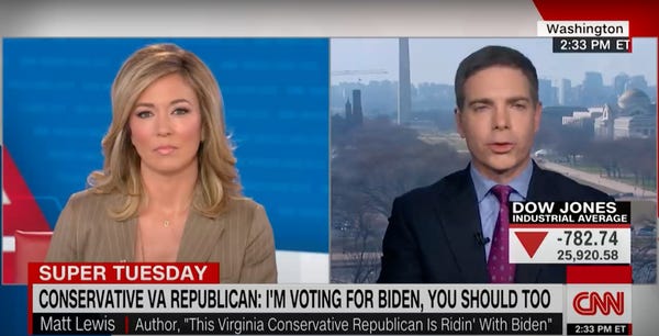 Matt Lewis is one of those “reasonable" conservatives who only seems reasonable because he writes for the Daily Beast and probably knows the right fork to use with his salad. He's already admitted that he's not voting for Joe Biden — even against Donald Trump, who's killing us all — because Biden supports abortion rights. Lewis voted for Biden in the Virginia primary on Super Tuesday, when presumably he was aware that Biden believed women were people. If abortion was a dealbreaker for him, why did Lewis meddle in our primary? He should've left us alone to nominate a baby-killing socialist or even — gasp! — a woman if that's what we wanted.