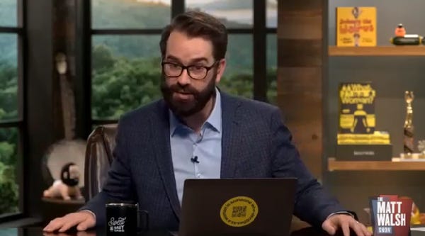 To review: Matt Walsh is having a weapons-grade toddler meltdown about the US Men's World Cup Soccer team putting rainbow colors on its crest. That is the grown man activity he is engaging in this week.