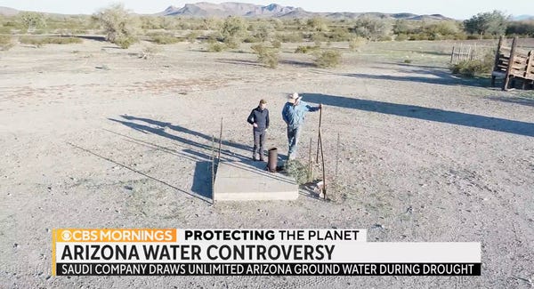 "Pumps are pumping water out of the ground that belongs to the State of Arizona, and essentially it's being exported to Saudi Arabia," Mayes said. "We cannot afford to give our water away frankly to anyone, let alone the Saudis, for free."