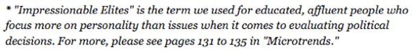 As Gawker points out, this comical footnote is the douchiest possible way Mark Penn -- or anyone, ever -- could have ended his Wall Street Journal column today. (Oh, yes, he has a regular WSJ column now called... "Microtrends." His punishment from God is to hawk this dumb book for the rest of his life.) [ WSJ , Gawker ]