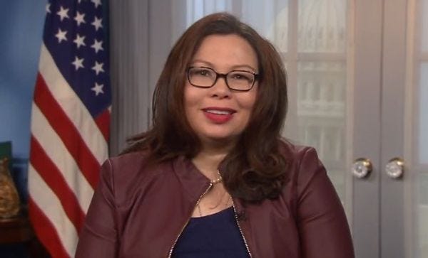 A great big congratulatory shout out to Tammy Duckworth, who today became the first sitting US Senator to give birth while in office, although if you want to get technical about it, she was probably neither seated nor in her office at the moment. The new baby is the senator's second daughter (her first, Abigail, was born when the Illinois Democrat was still in the House). As is traditional here at Wonkette, we'd like to join Kurt Vonnegut's Eliot Rosewater in welcoming Maile Pearl Duckworth to Earth: