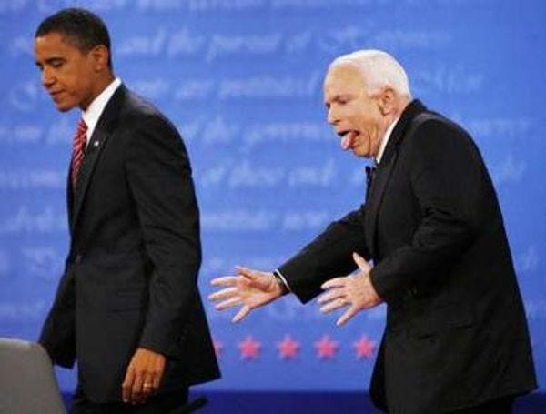 Isn't it a shame when "raw ecstasy" turns out to be something other than a line from a romance novel? There's not a heck of a lot of connection to McCain, unfortunately, which would have made for a much funner story, and maybe explained the old crank's mood swings.