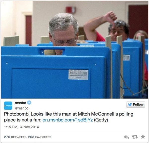 So we say again, good actual luck to Senate Majority Leader Mitch McConnell! May your time in office be brief and unremarkable.