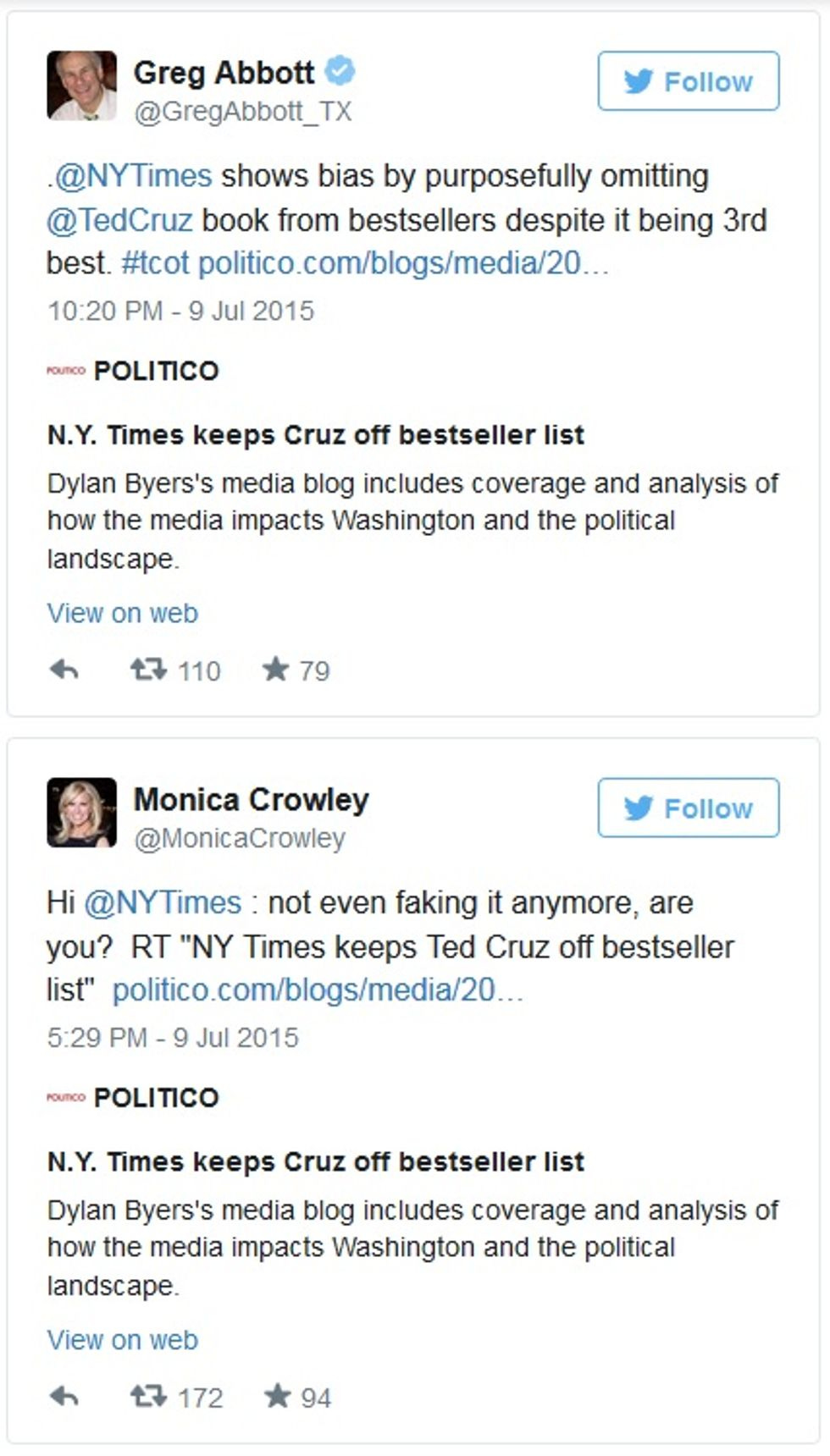 Mean New York Times Won't Let Ted Cruz Cheat His Way Onto Bestseller List