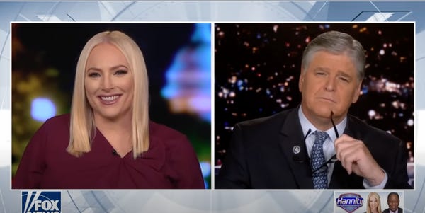 Hannity asked McCain about her father's 2018 funeral and how his 2008 running mate Sarah Palin was pointedly not on the guest list. (Palin criticized the McCain family for the snub.) However, now Megs is apparently Team Palin. Weird that McCain would suddenly sympathize with the same woman who jumped on the Trump train during the pre-boarding for crazies.