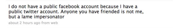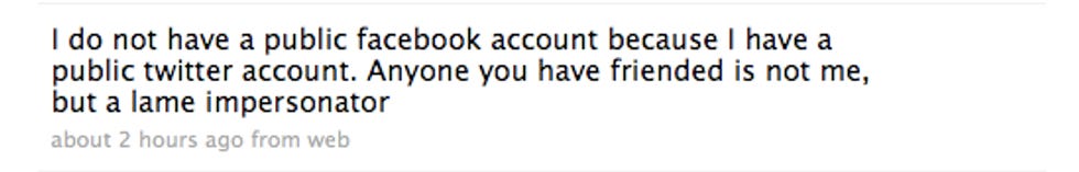 In other words, someone "hacked"—password guess: the word "asterisks"—into her private Facebook account, an account that the billions of Twitter people could not possibly have even known about, and sent lying messages they could not possibly have ever received. They must have been doubly or triply worried, somehow, about the events they didn't know about. In the future, just do not believe anything about Meghan McCain that did not come directly from Meghan McCain, via this Twitter, or via a compliment from a third-party. Compliments and Twitter only. Anyway Meghan's fine you guys!!