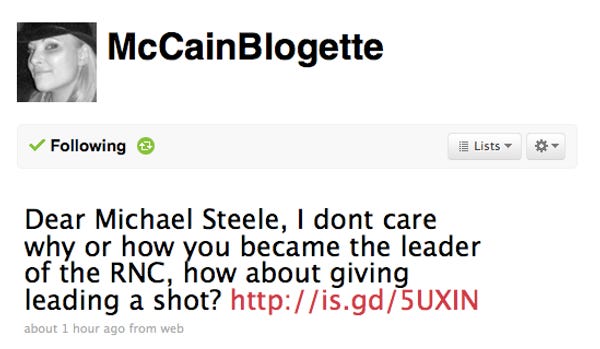 Meghan McCain's Twitter Deletes Michael Steele's 'Political Capital,' 140 Characters At A Time