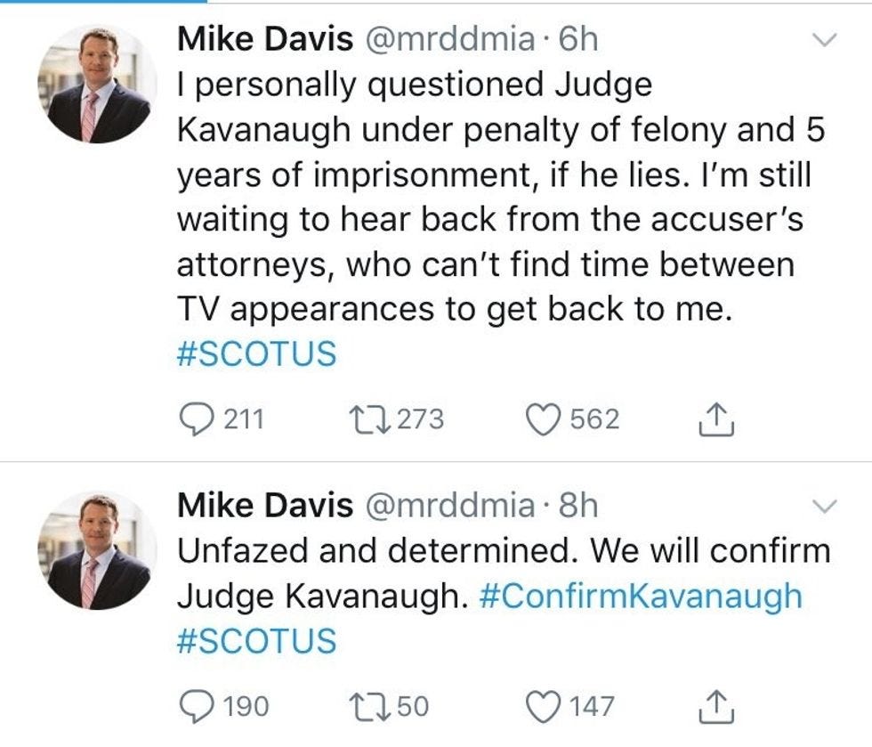 In fact, no further accusations aganst Kavanaugh can be countenanced, because there's a Supreme Court seat at stake, and to pay too much attention to women whose accusations might have a political result just sullies the whole Me Too movement, and that is such a shame for the real victims, who deserve better than to have these terrible fakers' claims heard. That's a new rule, you know: If there's a political consequence, it doesn't count as part of Me Too.