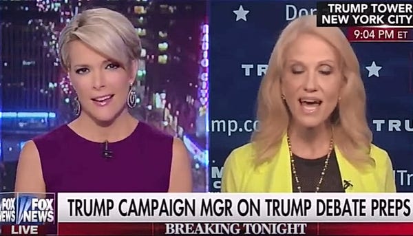 Kellyanne Conway, did you not hear what the mean news lady just said about how there are TWO FACETS to a campaign? Kelly tries to explain that Hillary is attacking Trump on this because she knows women hate him, and Conway just doesn't get it. Why does Hillary have to be so goshdarn impolite to Mr. Trump?