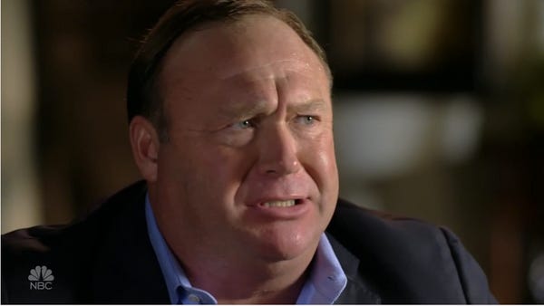Now, sure -- NBC could have merely done a special on the families and how they have been affected by Alex Jones's bullshit, hosted by someone who does not have "issues" of her own. It would have been much nicer and probably everyone would have approved. But that would not have been quite as effective as him also being on the show, stammering about and trying to excuse his complicity in this, and not doing a very good job of that at all. Enough rope, and all that.