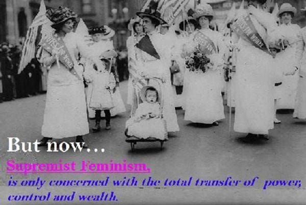 The women’s movement, relatively speaking, has it all and they continuously clamor for more regardless of the cost; that is, as long as the cost is primarily paid for by transferring $$$’s from men to women. Did you know that the two primary ways women achieve wealth are inheritance and divorce? All branches of government pay a significant number of women advocates hefty salaries to do not much more than go to meetings to figure out how to get more money for women. They call it work.