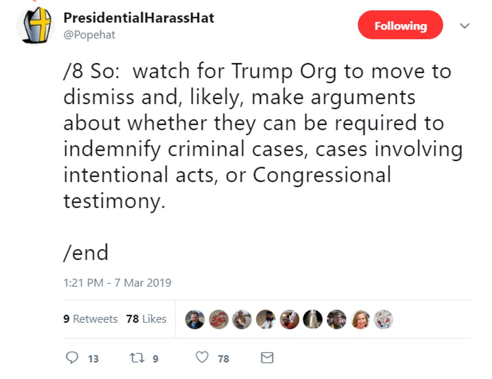 I wonder if this suit might force trump/Trump org to admit under oath that it directed Cohen to commit the crimes...