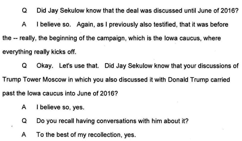 Just to be clear, Sekulow know Cohen's testimony was bullshit, right?