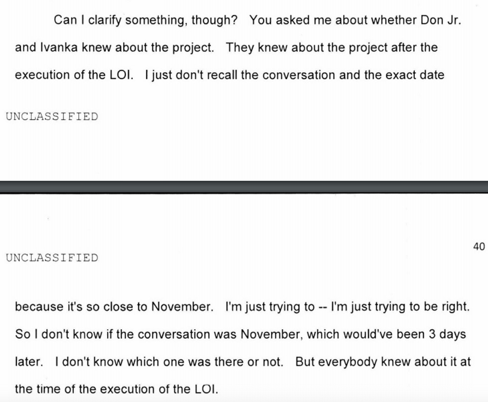 LAWYER: So, if I can interrupt, this statement deals only with the Trump Tower Moscow.