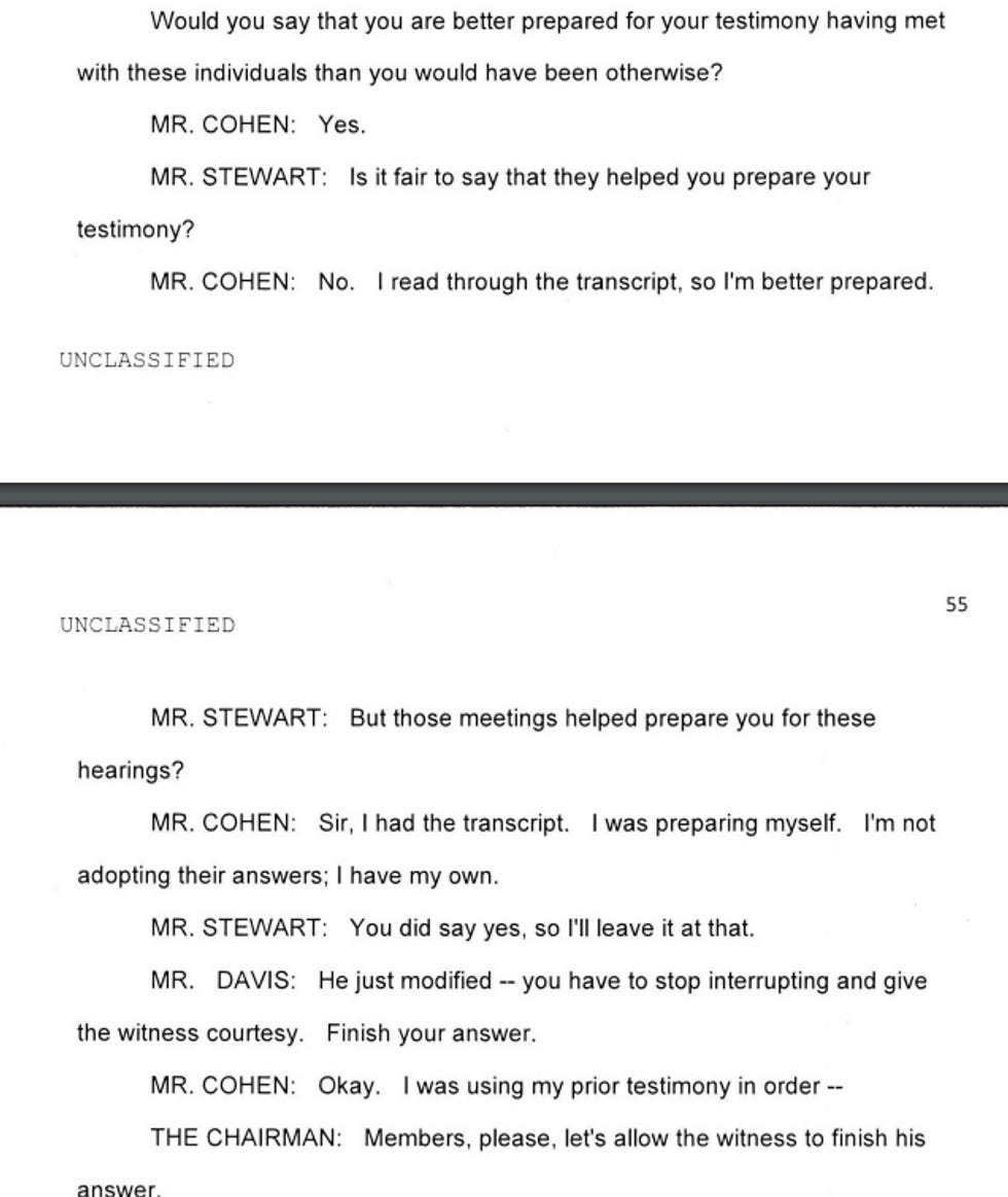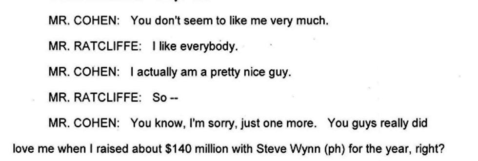 COHEN: Good. Good. Let's just stay on message. Keep this thing short.