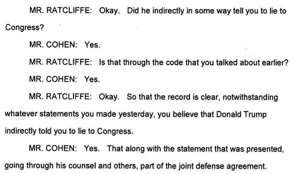 Ooops, did Rep. Ratcliffe inadvertently threaten to charge Mr. Cohen with more crimes?