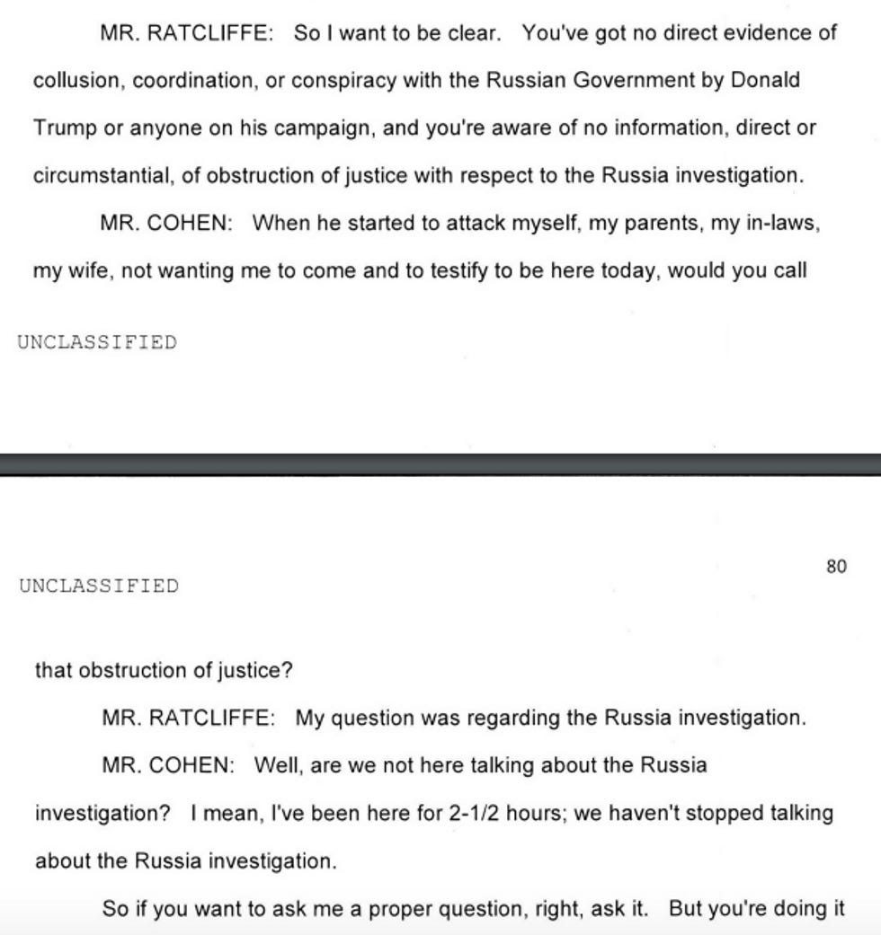 RATCLIFFE: Weren't you lying when you said Donald Trump was a Russian agent, Mister Cohen?