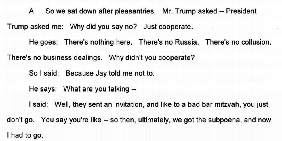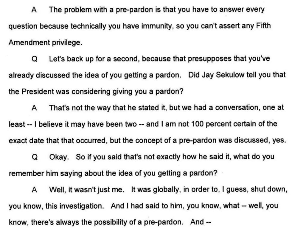 Well, there are two redacted sections in the questioning about pardons that sure as hell look like they're referring to Costello. And we guessing that's NOT because SDNY thinks he's so #BeBest at practicing law that they asked Congress to keep his name out of this whole mess.