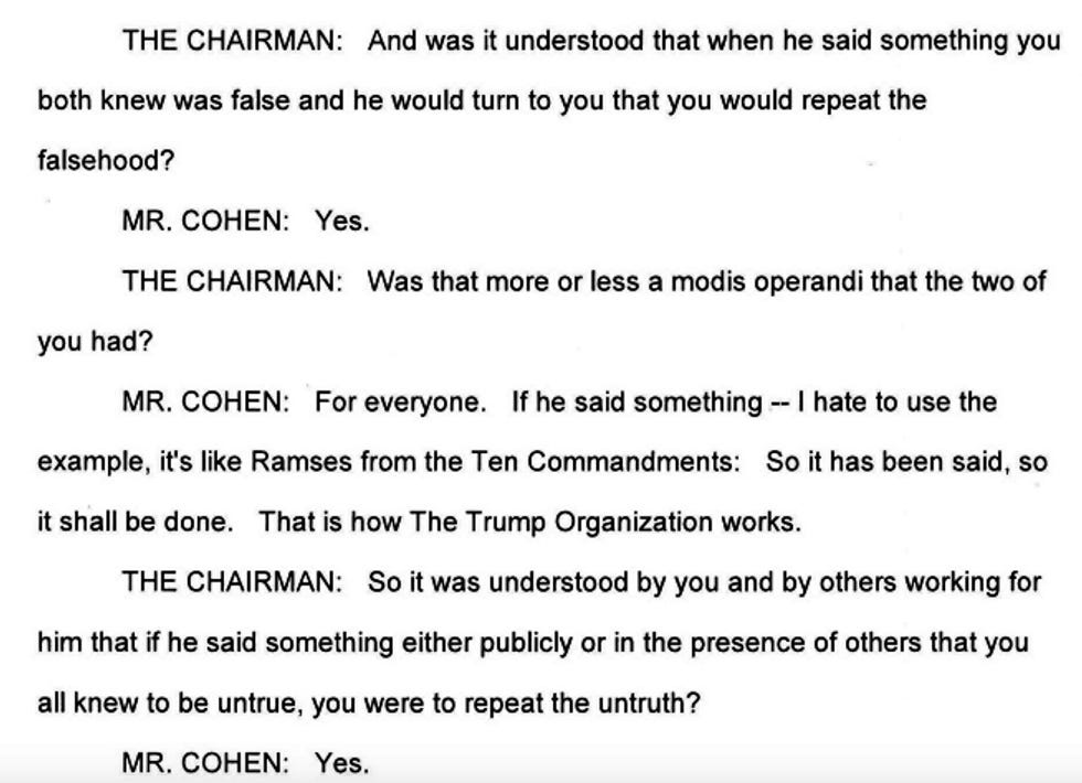 Here he is doing GOTCHAS to make Michael Cohen admit that Donald Trump directed him to make an illegal corporate, errr ... campaign contribution.