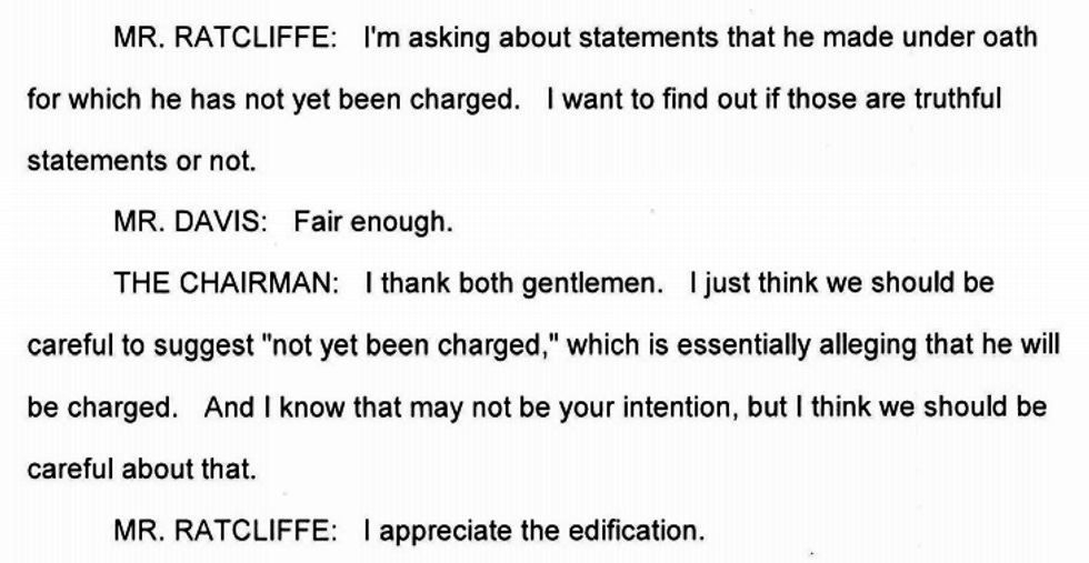 Don't faint, but if you peek ahead ten pages you'll find Congressman Ratcliffe trying to sneak in exhibits without giving copies to the Democratic members of the Committee.