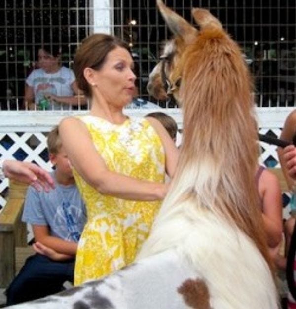 We heard just yesterday that a stack of recycled pamphlets and a Charles Manson fanboy were all that's left of her campaign, which means that these two things will now become her new deputy press secretary and senior adviser, respectively. [ AP ]