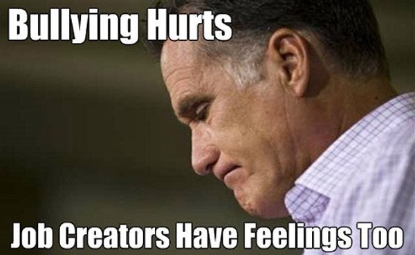 Well thank god, someone has finally come to the defense of all the rich. Michelle Malkin has bravely come forward to call for an end to the "bullying epidemic" that plagues our nation: