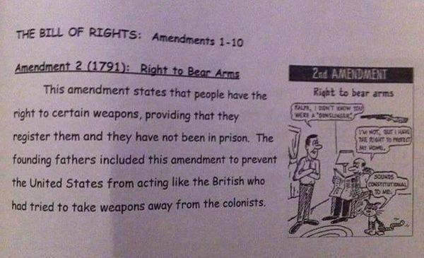 Middle School Workbook Gets 2nd Amendment Wrong, Wingnuts Outraged