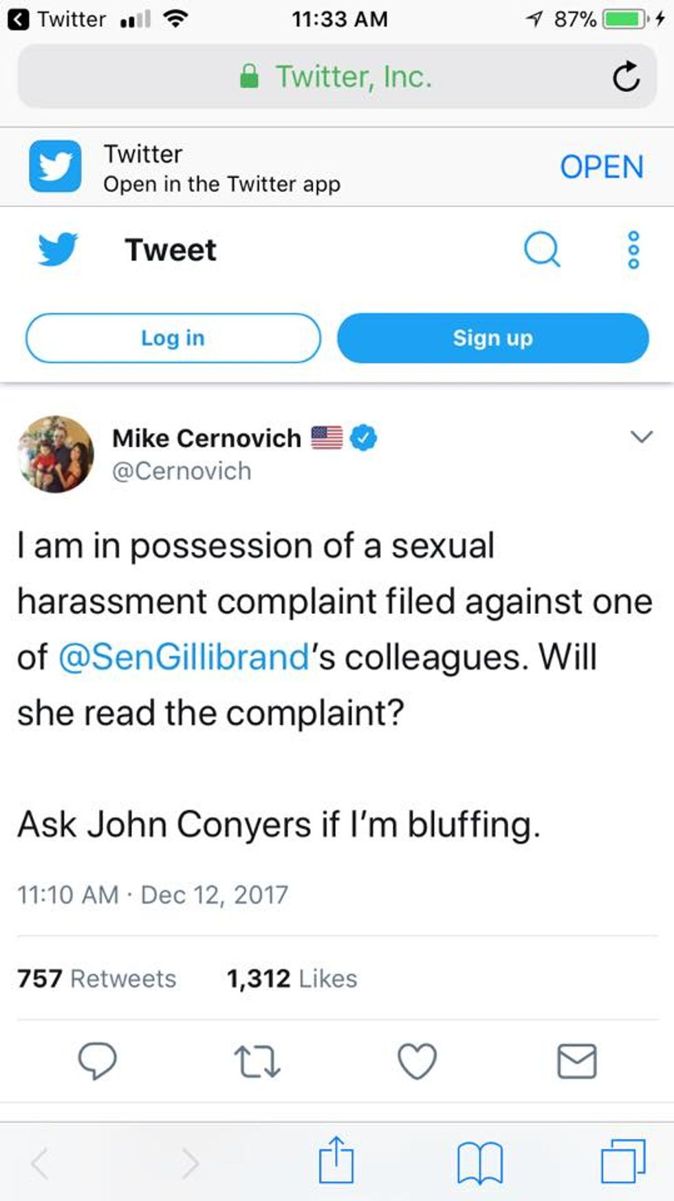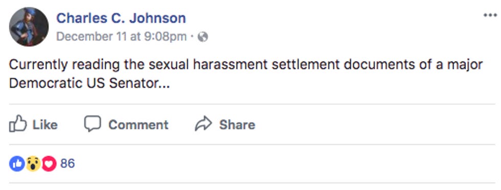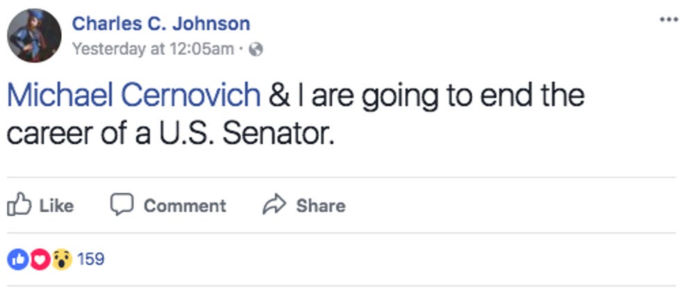 You could smell the fuckery a mile off -- "One of many red flags: No lawyer for the staffer is named." But still Mike Cernovich (do click through for his Official Journalismist Photo!) and Chuck C. Johnson (same!) spent days promising they were going to TAKE DOWN A SENATOR.