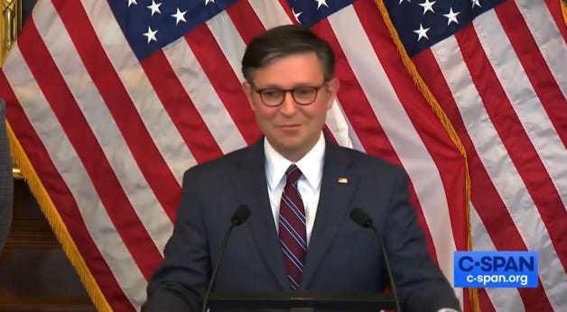 He said yesterday he wants to “trust the American people to reach their own conclusions.” Or, you know, whatever limited subset of the population Mike Johnson actually considers Americans. (All the fathers and sons who have an app to confess their devil boners to each other, you guys to the front!)