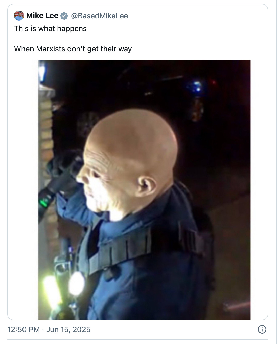 Vance Boelter is a registered Republican. He’s an anti-gay, anti-abortion pig. He’s a conservative Christian preacher. Basically all the red flag characteristics that say “Here’s a guy you shouldn’t leave your kids alone with,” but that MAGA Americans find godly and manly. Again, why is Mike Lee so ashamed? He has a lot in common with this guy! Surprised they aren’t taking up a collection for this guy’s legal defense in Mike Lee’s church. He just reminds us so much of Mike Lee (or any other white Republican loser, they really do all look alike).