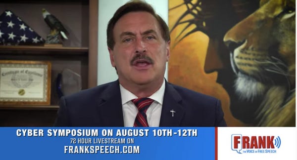 The so-called cyber symposium was plagued with technical difficulties, which Lindell attributed to Antifa, of course. (Click there for TONS of batshit videos.)