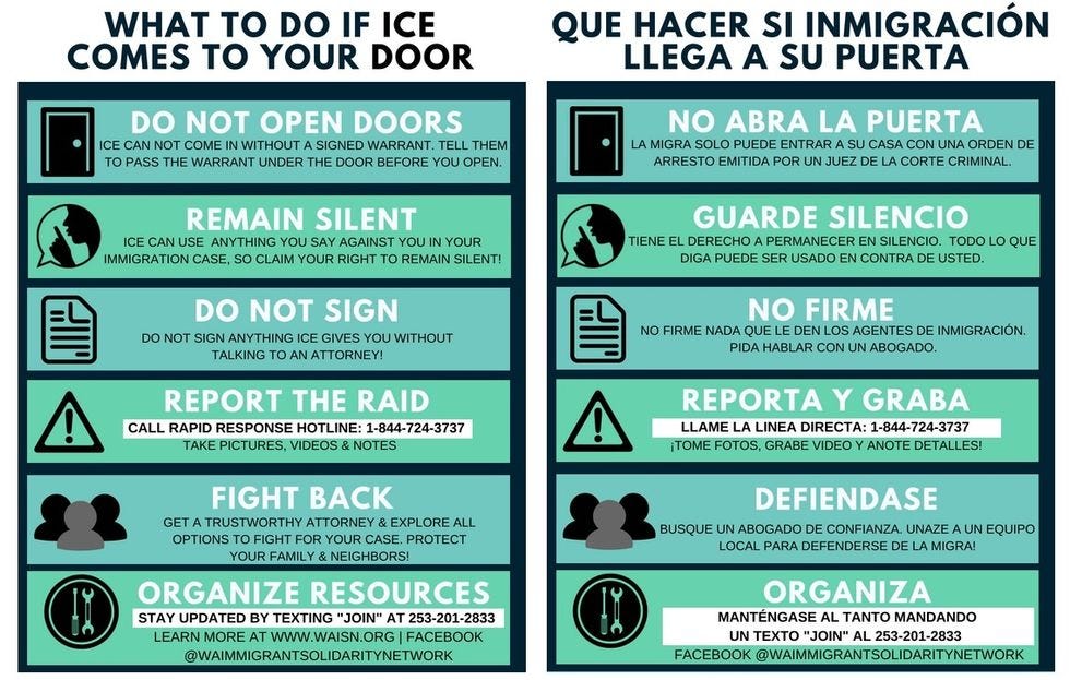 On either side of that image, the teens reproduced some know-your-rights tips from an immigrant-solidarity group, advising that if ICE doesn't show you a warrant signed by a judge, you don't have to open your door. That's the actual law, which is why dipshits on Twitter were very angry about it, since as anyone knows, illegals don't have rights (except for how they do).