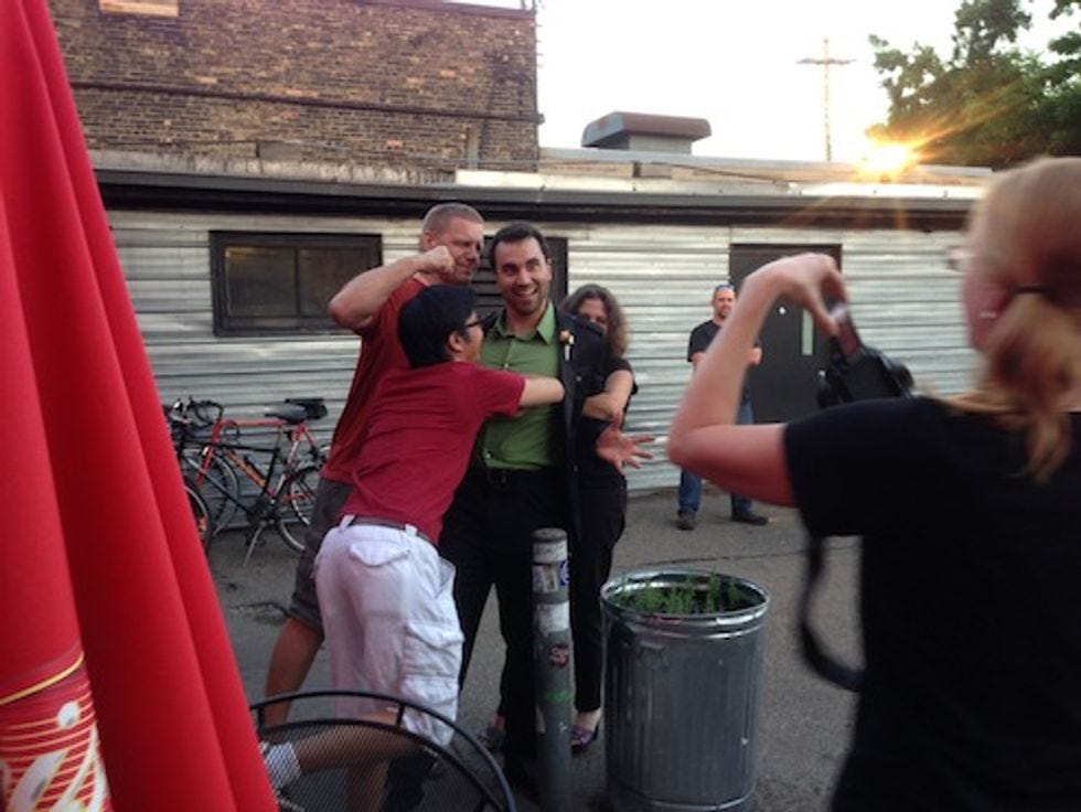 What is even going on in this picture? LIKE WE ARE SUPPOSED TO KNOW. Jesus, people, our Wonkgy in Minneapolis was AT LEAST five months ago now. (And then there was Des Moines, and then there was Norman, and then there was Dallas, and MY GOD, IT NEVER ENDED. Oh that's right, it did end, and we are back home in Los Angeleez, and the trip did not even kill us, and it did not kill our old dog -- our actual old dog, not our mom, or our copilot Miss Lisa Wines, or us even, but our sweet old shepherd Lilo, who made most of the trip with us except for that week she spent getting her ass kicked by Joe Biden and Angela Davis when she stayed at our mom's in Oklahoma in the middle of the trip, and who is like 13 but spry, she is basically like the Edie Windsor of cool old lady dogs what were we talking about? We do not know.) More pictures or whatever after the jump.