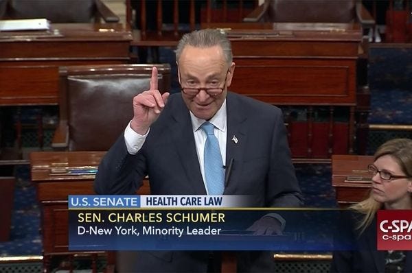 We're pleased to report, however, that Sort-Of Majority Leader Chuck Schumer has finally reached a "power-sharing agreement" with Soon-to-Be Minority Leader McConnell, and it only cost him half of his grandchild's soul (we kid!). Regardless, Schumer seemed upbeat.