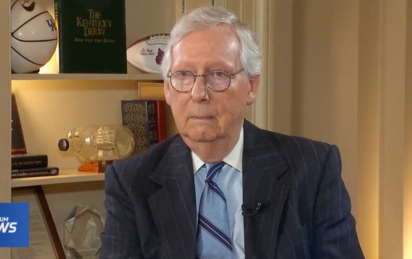And Politico ran a story this morning highlighting the abject failure of Trump's effort to oust McConnell as the head of the Senate Republican caucus. The hits have more or less bounced off his shell, making Trump and his allies look weaker for having failed to land a punch. As the article notes, no Republican senator, not even that pisspants Tommy Tuberville, a wholly owned Trump subsidiary, is bucking McConnell. The only ones challenging his leadership are candidates like Eric Greitens in Missouri and Kelly Tshibaka in Alaska, who'll need Trump's endorsement to get across the finish line.