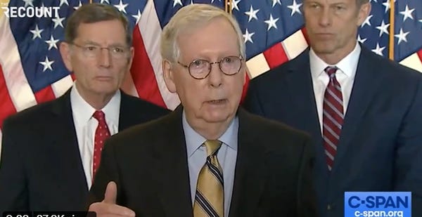 In the video, the minority leader is talking about the latest Democratic proposals to protect democracy, which Senate Majority Leader Chuck Schumer says are high priority this month.