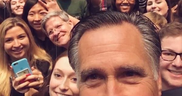 Willard Mittens Romneyton-Rafalca III formally announced his bid for the US Senate today with a cheesy video talking about what a very Utah kind of guy he is, because if anyone's forgotten it since the 2012 presidential election, he personally saved the Winter Olympics sometime before the approximately 4.3 million grandchildren in his ad were born. While the ad never mentions Romney's frequent disagreements with Donald Trump (or his frequent toadying to Donald Trump), the goal for the ad is to remind Utah voters that although he's not really from Utah, Mitt Romney is one of them, kind of, because he has "Utah Values," not Washington Values (and certainly not Massachusetts Values. Why would you even mention Massachusetts?)